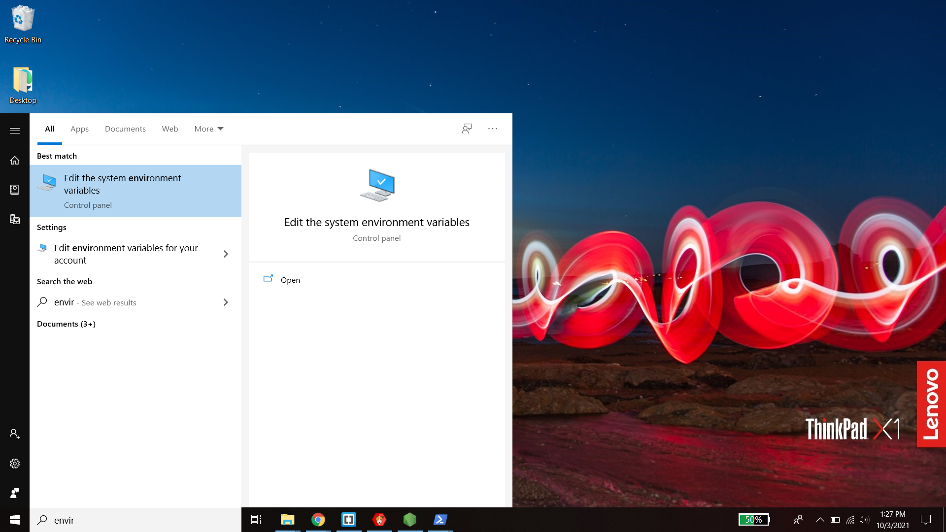 - Go to your start menu and type "environment variables". Click "Edit the system environment variables".