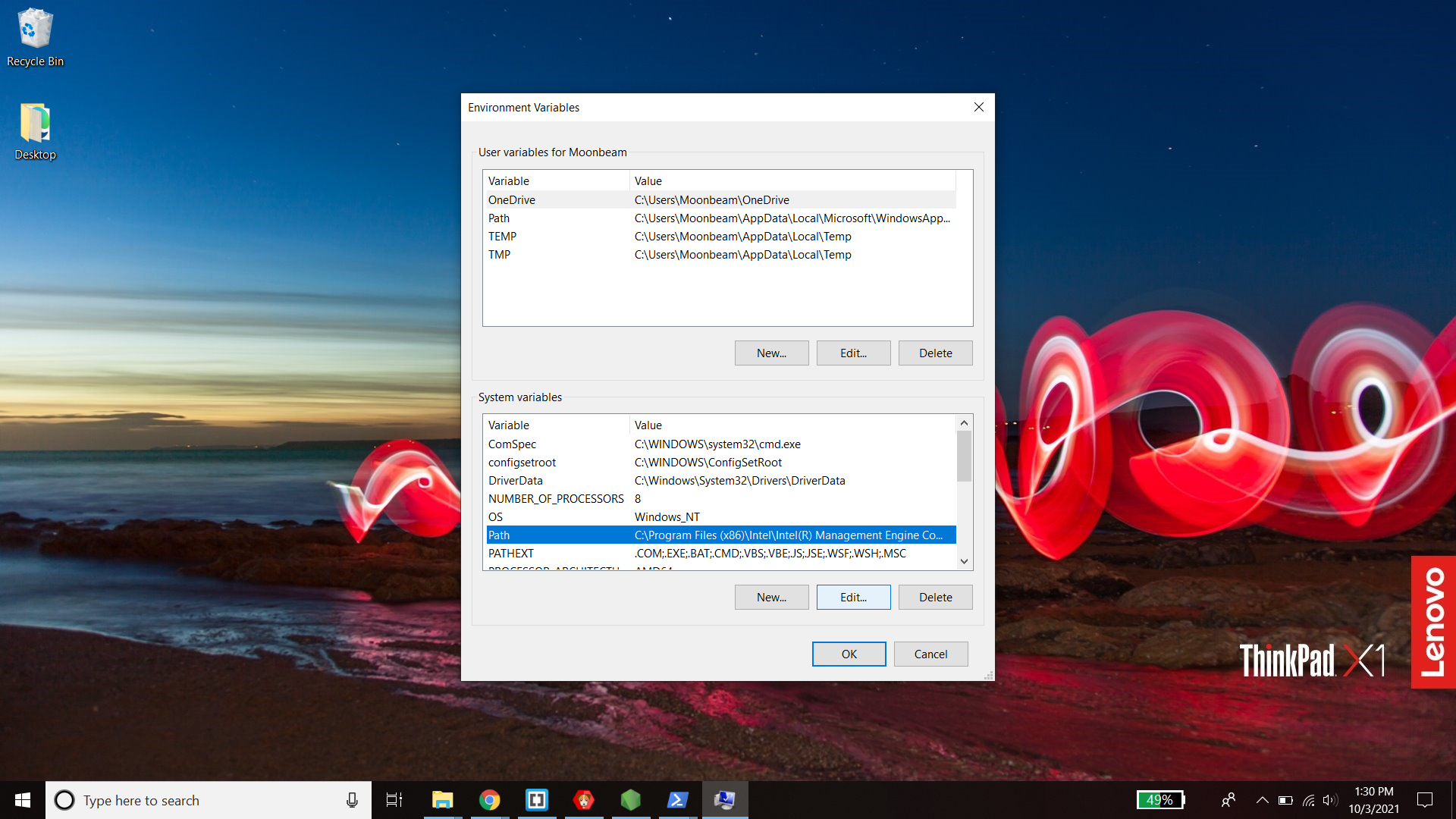 - From the bottom "System Variables" section, select the "Path" variable and click "Edit".